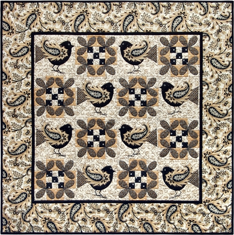 An applique pattern feauturing the traditional Honey Bee Block and a Bird Block designed by Janet Locey. Use fat quarters.