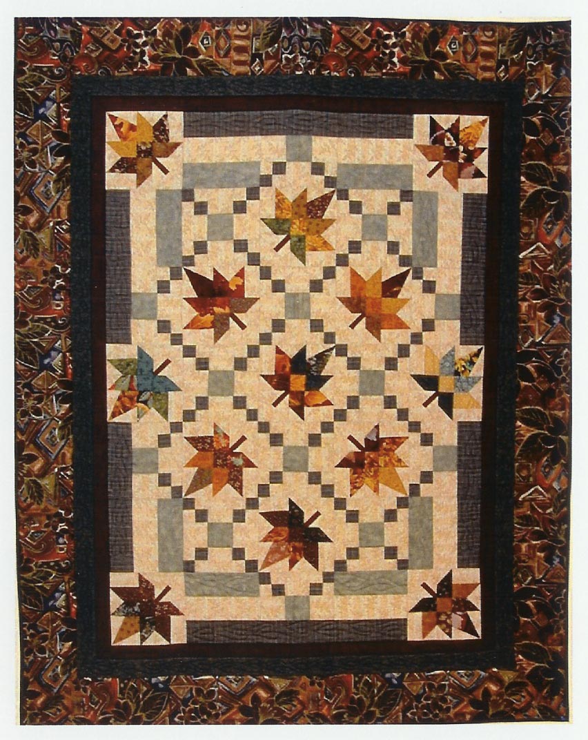 Time to use those brilliant fall colored fabrics to create your own turning of the seasons in this machine pieced leaf quilt.