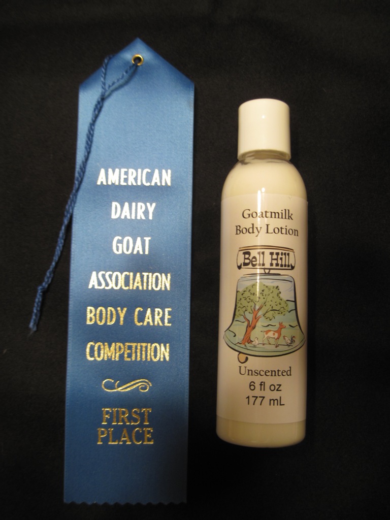 Our very own Bell Hill unscented goat milk lotion placed number 1 in the 2011 Bath and Body Care Competition sponsored by the American Dairy Goat Assn in Grand Rapids, Michigan.